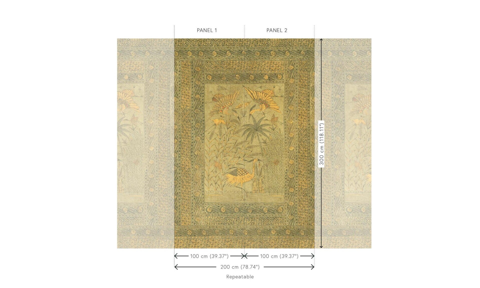 Passeggio roept de sfeer op van een verweerd, klassiek fresco waarin sierlijke kraanvogels de hoofdrol spelen.